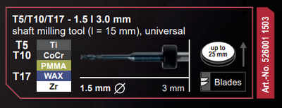T5/T10/T17 - 1.5 | 3.0mm shaft milling tool (I=15mm) universal