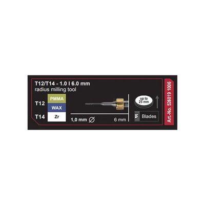 T12/T14 - 1.0 | 6.0 mm radius milling tool PMMA/Wax/Zr