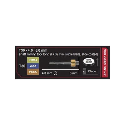 T30 - 4.0 | 6.0 mm shaft milling tool long (I=32 mm single blade, slide coated)