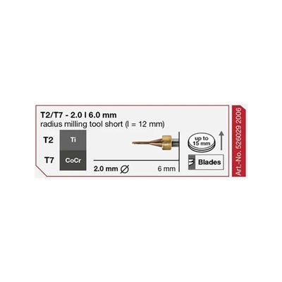 T2/T7 MILLING TOOL - 2.0MM | 6MM SHAFT (TI, COCR)